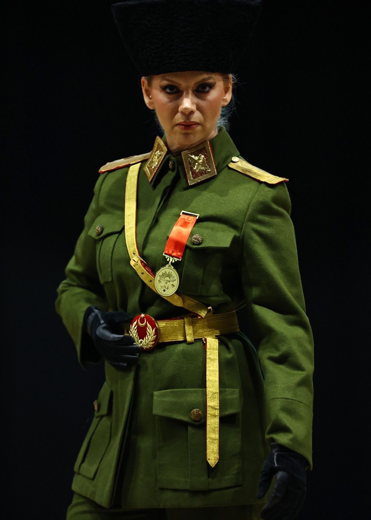Arşiv ve müze kaynaklarından yararlanılarak hazırlanan birebir replikalar ile kıyafetlerin kadınlar için uyarlanmış versiyonları sahnede sergilendi.