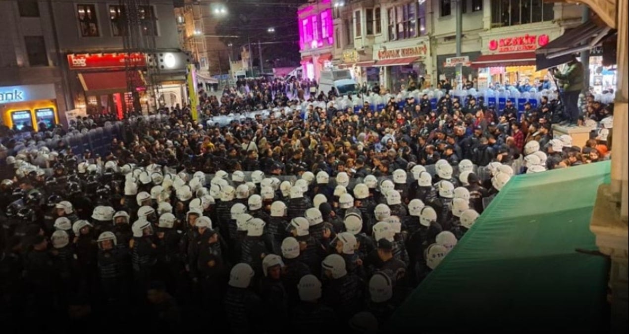 Eylemden önce Beyoğlu Kaymakamlığı, ilçedeki tüm açık alanlarda 24 saat süreyle toplantı ve gösterilerin yasaklandığını duyurdu. Açıklamada, sosyal medya üzerinden yapılan çağrıların kamu düzeni açısından risk oluşturabileceği belirtilerek, 2911 sayılı Kanun ve İl İdaresi Yasası kapsamında 25 Kasım 00.01’den itibaren gösterilerin yasaklandığı bildirildi.